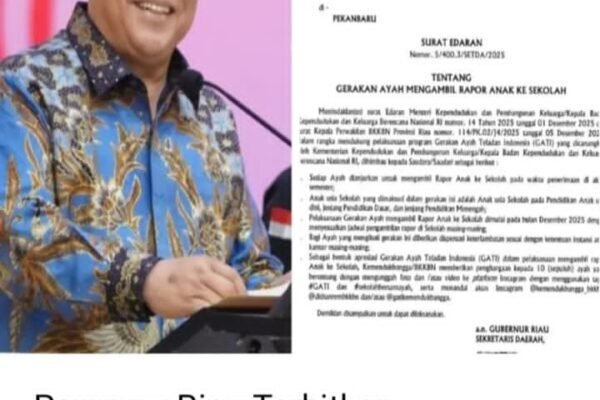 PEKANBARU – Pemerintah Provinsi (Pemprov) Riau mengeluarkan surat edaran (SE) yang ditujukan kepada seluruh Kepala Organisasi Perangkat Daerah di Lingkungan Pemprov Riau. SE dengan nomor 5/400.3/SETDA/2025 itu tertanda Sekretaris Daerah Syahrial Abdi atas nama Gubernur Riau itu dikeluarkan pada Selasa, 16 Desember kemarin. Adapun surat tentang Gerakan Ayah Mengambil Rapor Anak ke Sekolah itu menindaklanjuti surat…